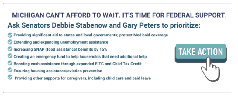 The policy solutions the League has proposed will make a difference and help lift up Michigan’s families through this crisis, but one fact we must face is this: Michigan is woefully unprepared to weather this storm on our own. The solutions are impossible without federal relief.