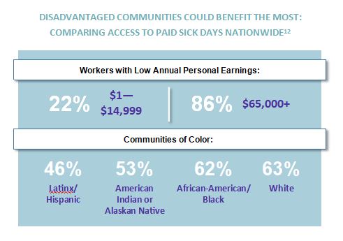 - Lack of earned sick leave incentivizes neglect of personal and family health. Workers who do not have paid sick days are three times more likely to neglect medical care for themselves and nearly two times more likely to neglect medical care for their families.5