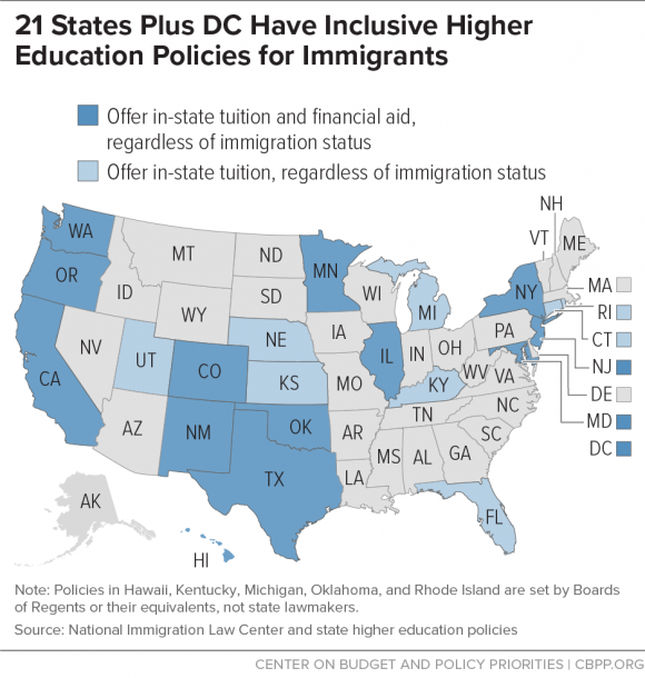 Allow college-bound individuals, regardless of immigration status, to pay in-state tuition at public colleges and universities and obtain state financial aid. Over time this would boost the skills and wages of the state workforce. Illinois and New York achieved full tuition equity this year by extending access to state-based financial aid to students who are undocumented. - Strengthen labor law enforcement. This would help ensure that all workers, regardless of immigration status, are paid what they earn and help level the playing field for both businesses and workers in the state. Colorado, for example, enacted a measure this year making wage theft a felony and including migratory and foreign workers in the definition of employees protected by the new law.