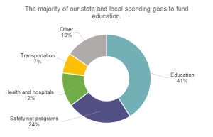 As in most states, Michigan’s largest expenditure is education, followed by social safety net programs, health and hospitals, transportation, public safety, housing, and parks. All of these goods and services benefit the families, workers and businesses that call Michigan home.